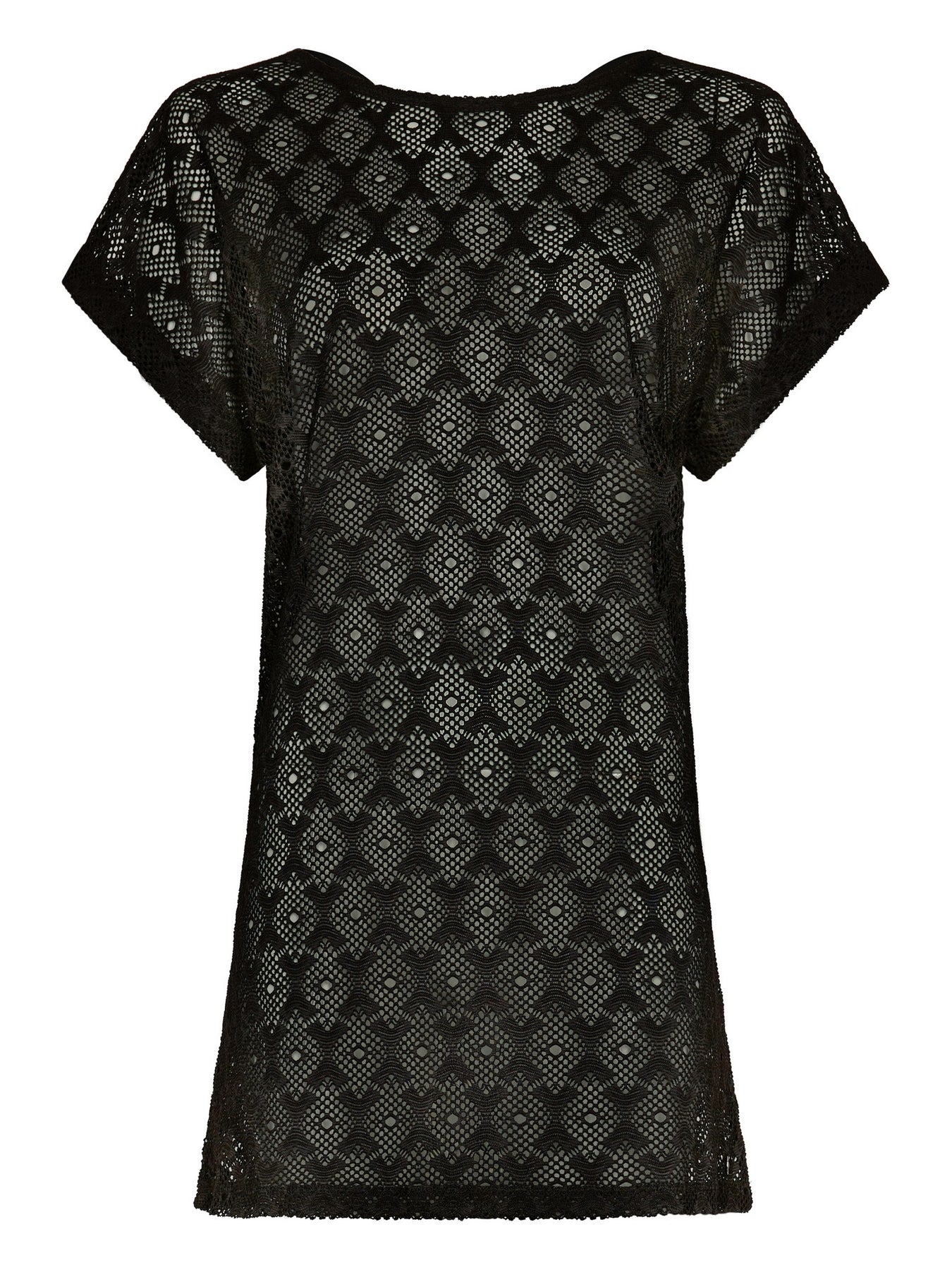 De opengewerkte, gehaakte stof geeft een speels en verleidelijk effect, terwijl de losse fit en korte mouwen zorgen voor ultiem comfort. Perfect om over je bikini te gooien op weg naar de beach bar of tijdens een relaxte strandwandeling.